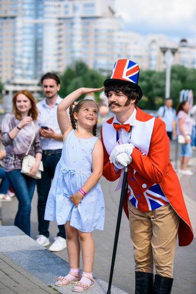 Элегантный господин с туманного Альбиона с блестящим знанием английского языка, но сильным ливерпульским акцентом. Некогда Англичанин прибыл по поручению королевы и с тех пор стал желанным гостем на вечеринках в лондонском стиле, британских и европейских тематический корпоративах и тимбилдингах «Вокруг света». Костюм в цветах британского флага, броский цилиндр, бабочка и антикварная трость всегда напоминают ему о родине, а нам о возможности сделать красивое фото с импозантным персонажем. Приятен в общении и добродушен, имеет легендарное английское чувство юмора. С удовольствием перекинется парой иностранных слов во время чаепития, сделает селфи на фотозоне и встретит ваших гостей.
