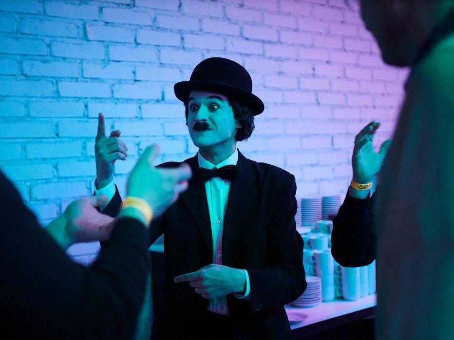 Величайший комик в истории, главный герой немого кино, Чаплин без слов развеселит даже самых серьезных. Его неподражаемая харизма станет изюминкой вечеринок в стиле «Голливуд», «Чикаго», «Кино», «Оскар», тимбилдинга «Арт фестиваль». Живописный аниматор создаст особенную атмосферу на вашем тематическом празднике. Чудной и утонченный персонаж встретит гостей в своей изумительной манере, чем сходу задаст верное настроение. Черный котелок, костюм, ботинки и фирменные усики делают его образ уникальным. Он бесподобно смотрится на фотозоне с Мерилин Монро, Гангстером, Толстым копом.