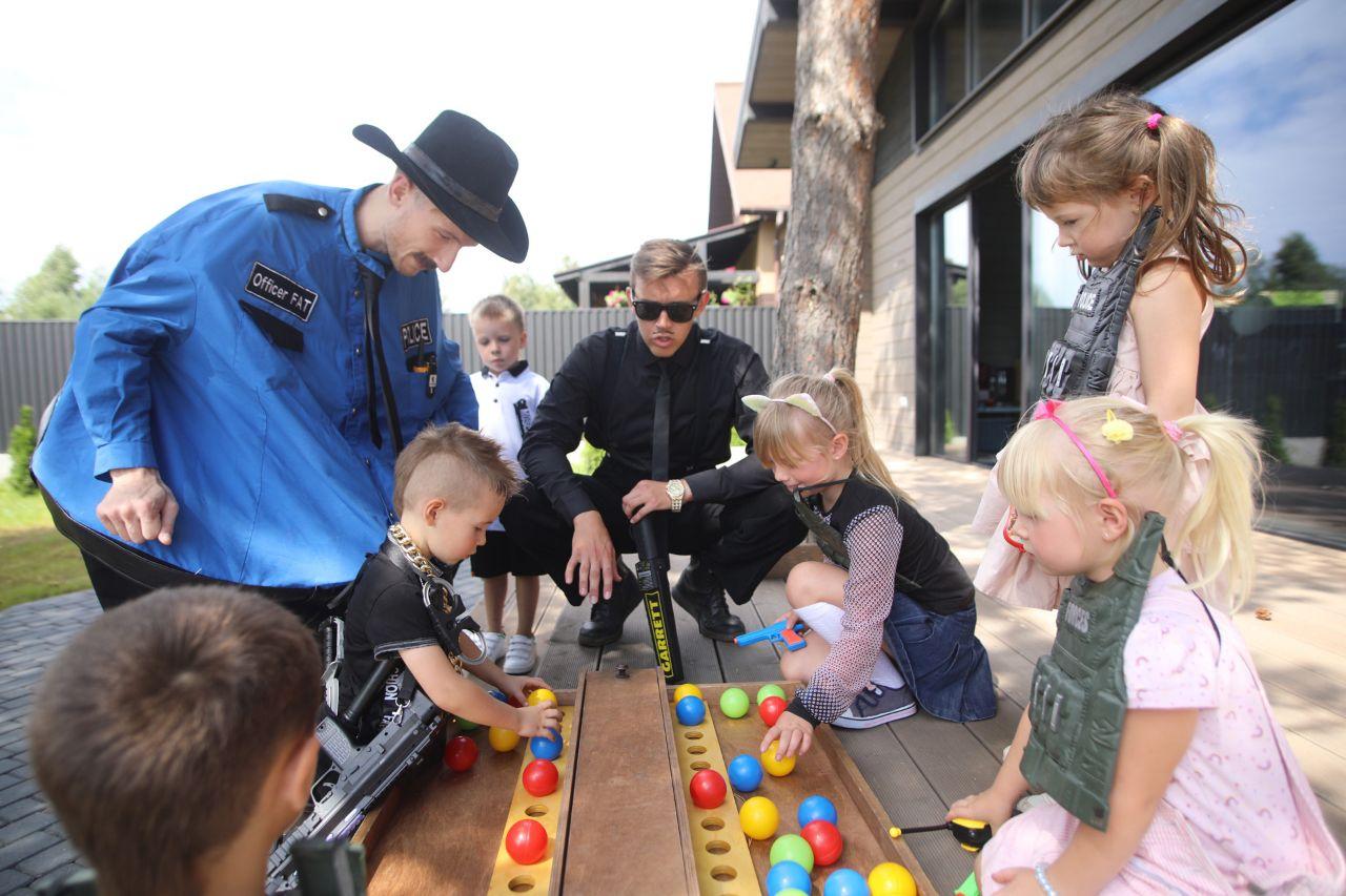 Детский праздник Полицейская академия это ускоренное курс обучение под руководством смешных и веселых аниматоров, толстого копа и копа качка. Новобранцам предстоит освоить азы строевой подготовки, посетить тренировку в импровизированном тире, научится проходить препятствия и разгадывать запутанные головоломки, оказаться на шуточном занятии по обороне, овладеть навыками маскировки и научится управлять транспортом современных копов. Дополнительно в сценарий праздника можно вводить гангстера с его непростыми заданиями.