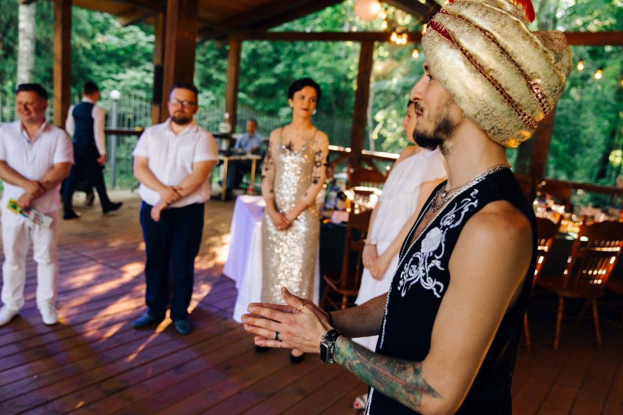 Он ходил по углям и сидел в позе лотоса, когда Инд и Ганг еще были мелкими ручейками. Обучил Будду медитации и рассказал Зите и Гите, что они сестры. Йог поведает вам свою мудрость на командном тимбилдинге «Вокруг света», а также тематических корпоративах вашей компании. Сделает самую одухотворенную фотографию за пределами Шамбалы. Великий мастер индийского танца, он обучит азам всех желающих, а затем сам продемонстрирует пластику непостигаемой высоты. Его чудесный головной убор и колоритный наряд сияют, как Солнце на просторах Индии, а светлый взор полон спокойствия.