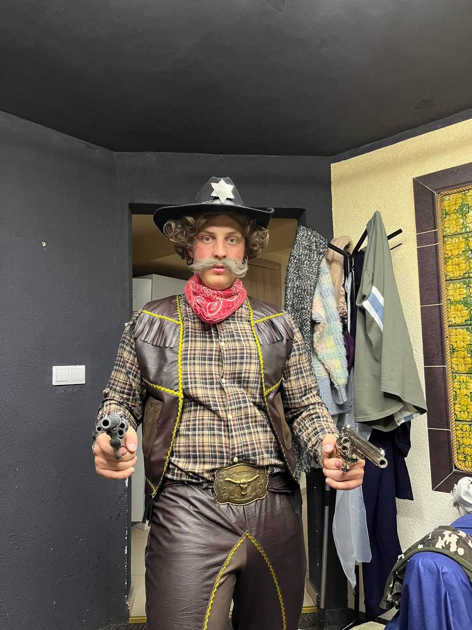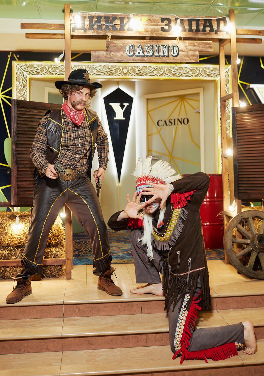 Актёр-аниматор является неотъемлемой частью вашего праздника в стиле дикого запада, и его присутствие на встрече гостей станет гарантией хорошего настроения для отдыхающих. В его репертуаре не только внешний облик, но и способность организовать зажигательные танцы и флешмобы, в которых он выступает в роли ковбоя-шерифа. Дополнительно аниматор может провести веселые игры и конкурсы.