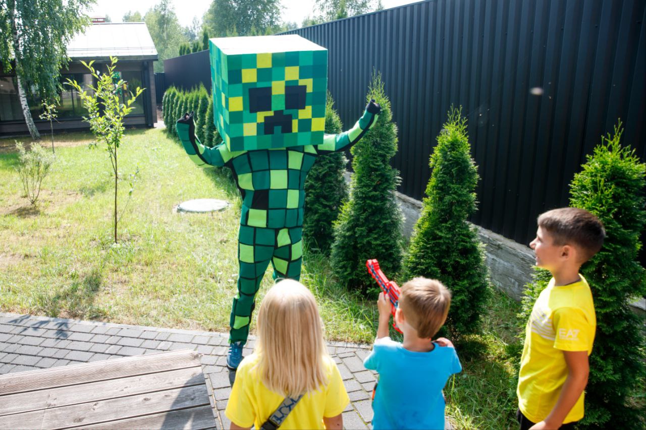 Аниматор Крипер – это самый популярный персонаж игры Minectaft. С 2009 года он блуждает в мире кубиков в поиске друзей. «Создатель» сделал его отрицательным героем, но он всегда был другим. Улыбки и смех — вот что обожает наш приятель. Смело можно и нужно приглашать его на тематическую вечеринку «Майнкрафт» или организовать день рождения ребенка в стиле «Игровая вселенная», где мы знакомимся с персонажами из других известных миров. Такими как: «СуперМарио» и герои игры «Фортнайт». Вместе мы сможем удивить всех на вашем детском празднике. Необычным гостем Крипер станет и на корпоративе для ай ти компании в Минске. Благодаря таким гостям получатся яркие и красочные фотографии.