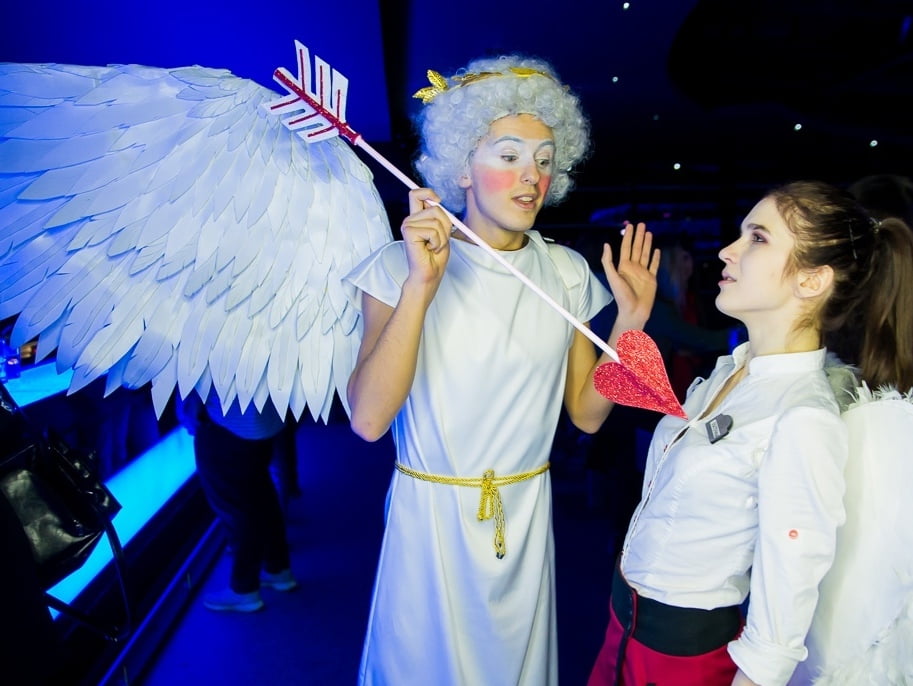 Символ и творец любви. Рождение этого важнейшего чувства подвластно озорному Купидону. Его нежные крылья и кудри отвлекают от самого важно: когда и в каком направлении будет выпущена заветная стрела. Присутствие этого аниматора обязательно на вечеринках в День святого Валентина. Также он напомнит молодоженам на свадьбе о чудесном моменте начала их отношений. Божественный крылатый юноша в белой тоге, в компании своего алого собрата, изыскано позирует на фотозонах, создавая воздушную атмосферу небесной красоты. Одни его проклинают, другие благодарят, но ускользнуть от выстрела никто не в силах. Отлично себя чувствует и великолепно смотрится вместе с Ангелами.