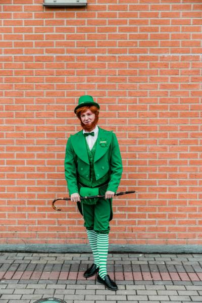 Лепрекон — Аниматор на День Святого Патрика, ирландский волшебник и хитрец никому не скажет, где спрятал горшок с золотом, но затравит тысячу шутливых историй о своих похождениях на вечеринках к Дню святого Патрика, «Вокруг света», «БИРФЕСТ», ирландских и пивных праздниках, корпоративах в пабах и барах. В конце концов, просто поздравит ваших рыжих друзей! Актер-аниматор с головы до ног одет в ярко-зеленый костюм, на макушке красуется цилиндр, а на лице огненно-рыжая борода. Весельчак из британского фольклора встретит гостей, а также оживит фотозону своим звенящим весенним обаянием. Очень любит монеты, а еще старый добрый эль, за них станцует по-ирландски или поделится счастливым клевером.
