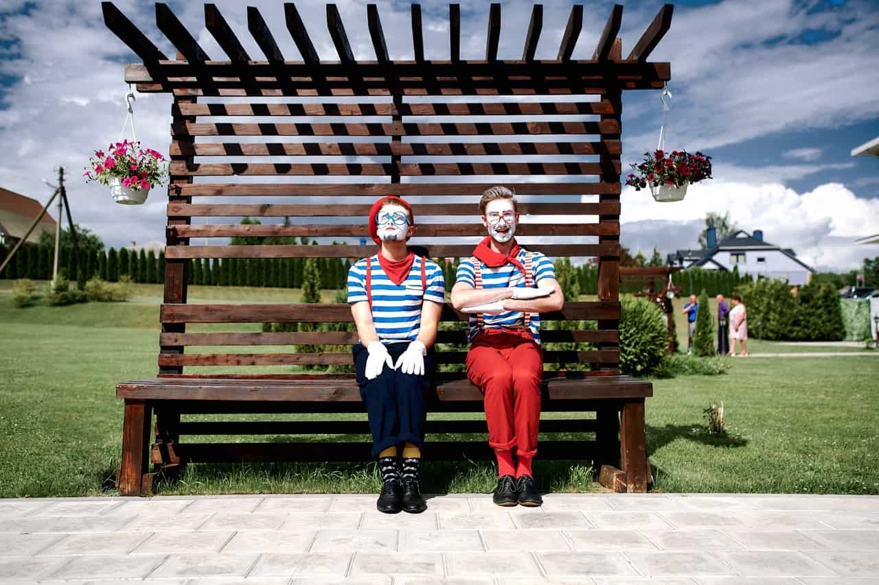 Предпочитая проводить время в веселой компании, Мим «Франция» и его друг-земляк появляются на многих праздниках. Вместе они приносят невероятную свежесть и причудливый задор на встречу гостей, превращают фотозону в конвейер счастливых фотографий. Это лучшие мимы на свадьбу! Они наполнят ваше общение и снимки живописной парижской романтикой. Незабываемый образ артистов легок и чудесен: белый грим, черные ботинки, уморительные подтяжки поверх ярких, будто невесомых тельняшек. Эксцентричные французы обойдутся без иностранных выражений и порадуют каждого искусной пантомимой с фирменным остроумием.