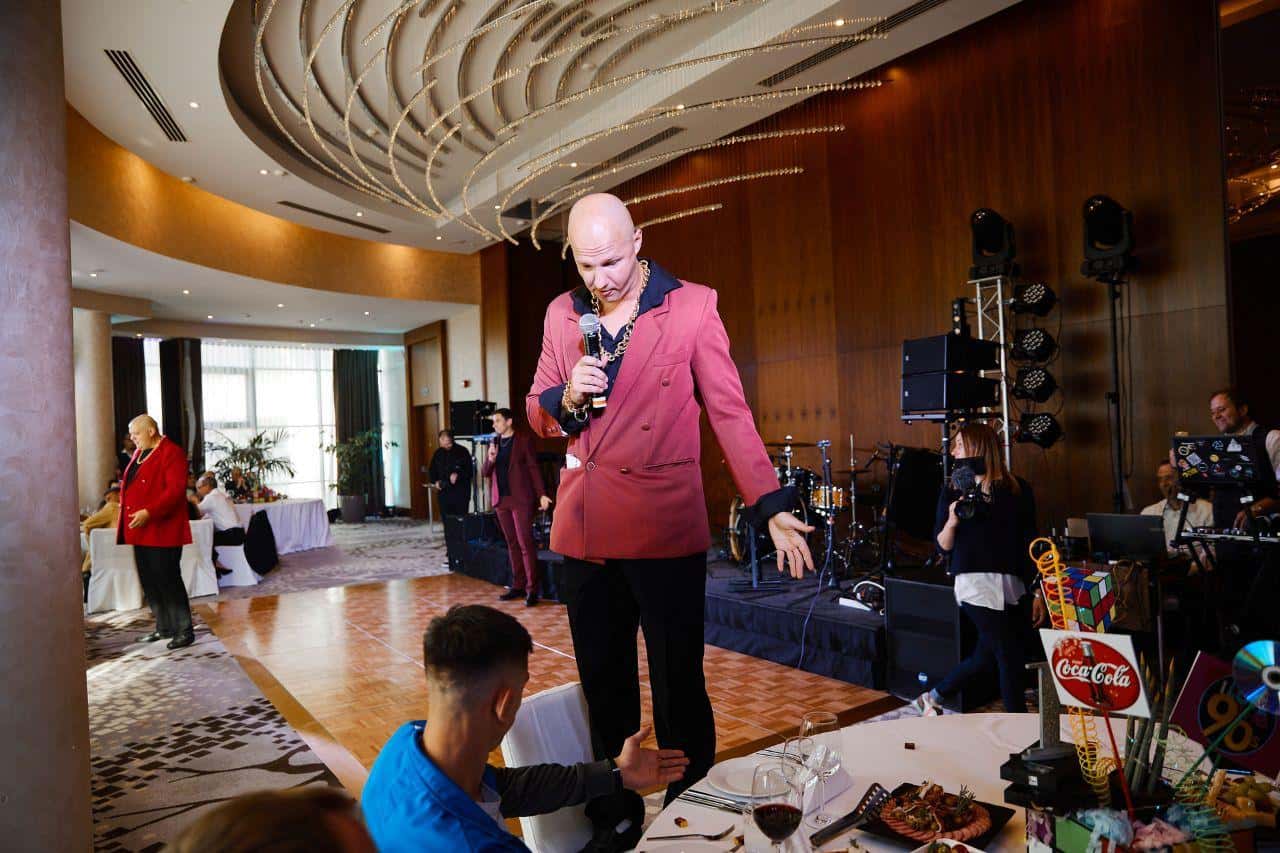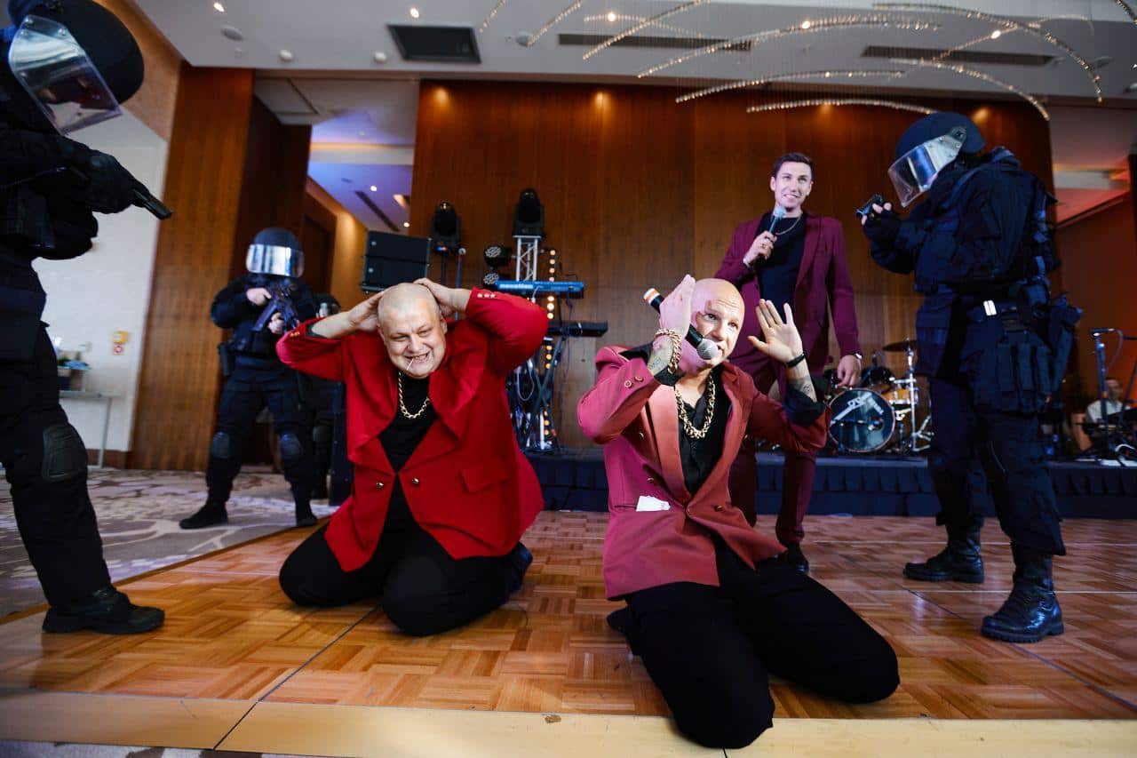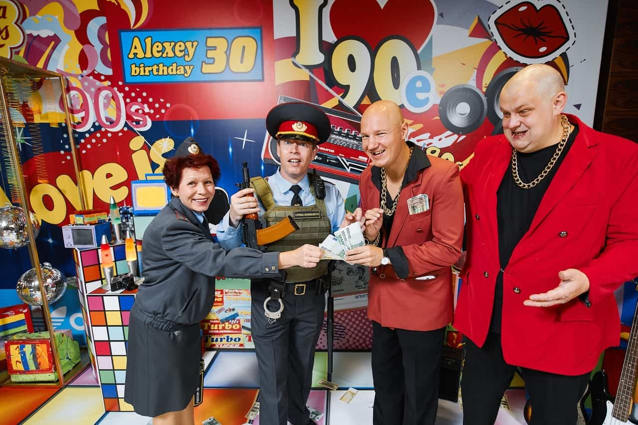 Культовые ребята из эпохи 90-х рано или поздно подкатят к вам на «меринах» и «бэхах», потому что везде имеют свой интерес и процент. Ждите визит Новых русских на вечеринках 90-е, ретро, в русском стиле. Харизматичные аниматоры в малиновых пиджаках обязательно предложат свою «крышу» на тематическом корпоративе. В случае отказа могут «отжать» фотозону, где любят поблестеть золотыми цепями и лысинами. Братки с «реальным» чувством юмора оформят встречу гостей с незабываемым колоритным общением, а еще обменяют свеженапечатанную валюту по выгодному курсу. Справиться с их пылом помогут наши ретро персонажи: Буфетчица, Спортсмены и другие «чёткие» аниматоры.