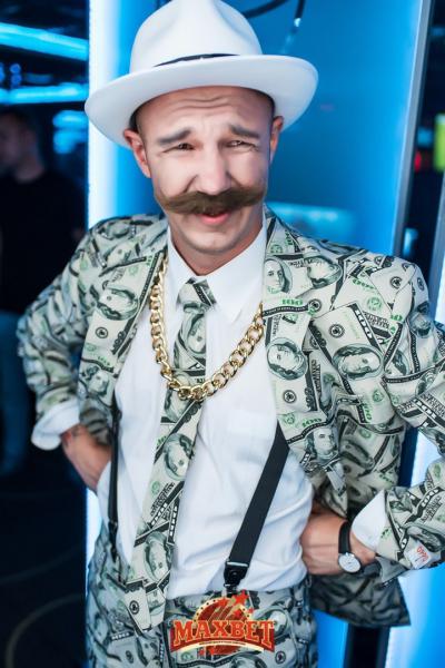 К нему деньги липнуть сами. Папа Казино предпочитает зажигать за игровым столом, а не потеть за станком. Завсегдатай вечеринок в стиле «Казино». Аниматор одет в костюм с изображением его любимой вещи – стодолларовой купюры. В белоснежной шляпе и рубашке, с толстой сигарой, персонаж вальяжно «стрижет зелень». Сам вид этого господина говорит, что жизнь удалась. Освободившись от подсчета прибыли, он составит вам непринужденную, остроумную компанию, поможет поймать удачу за хвост, а также сделает креативные фотки, каждая из которых будет «на миллион долларов»!