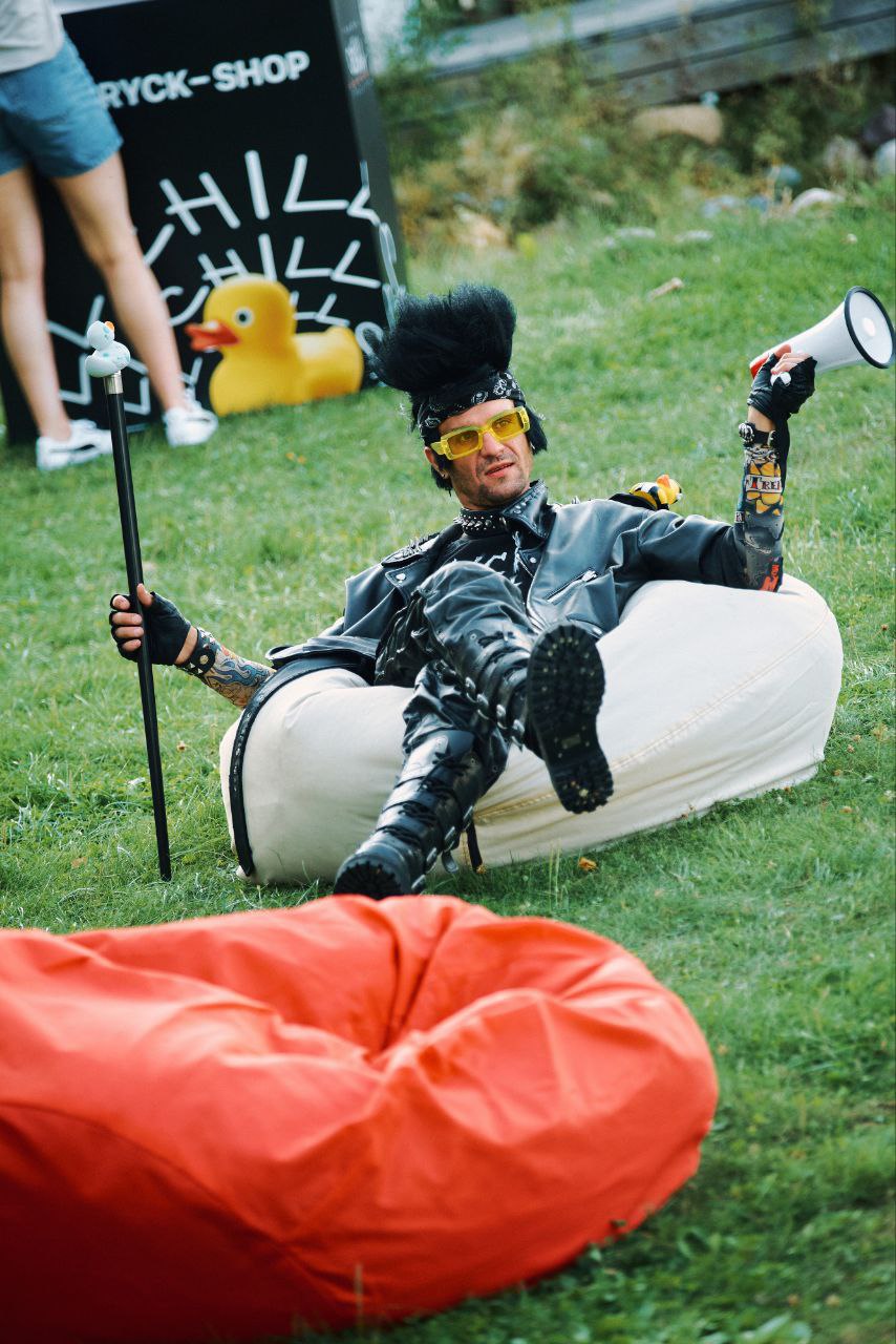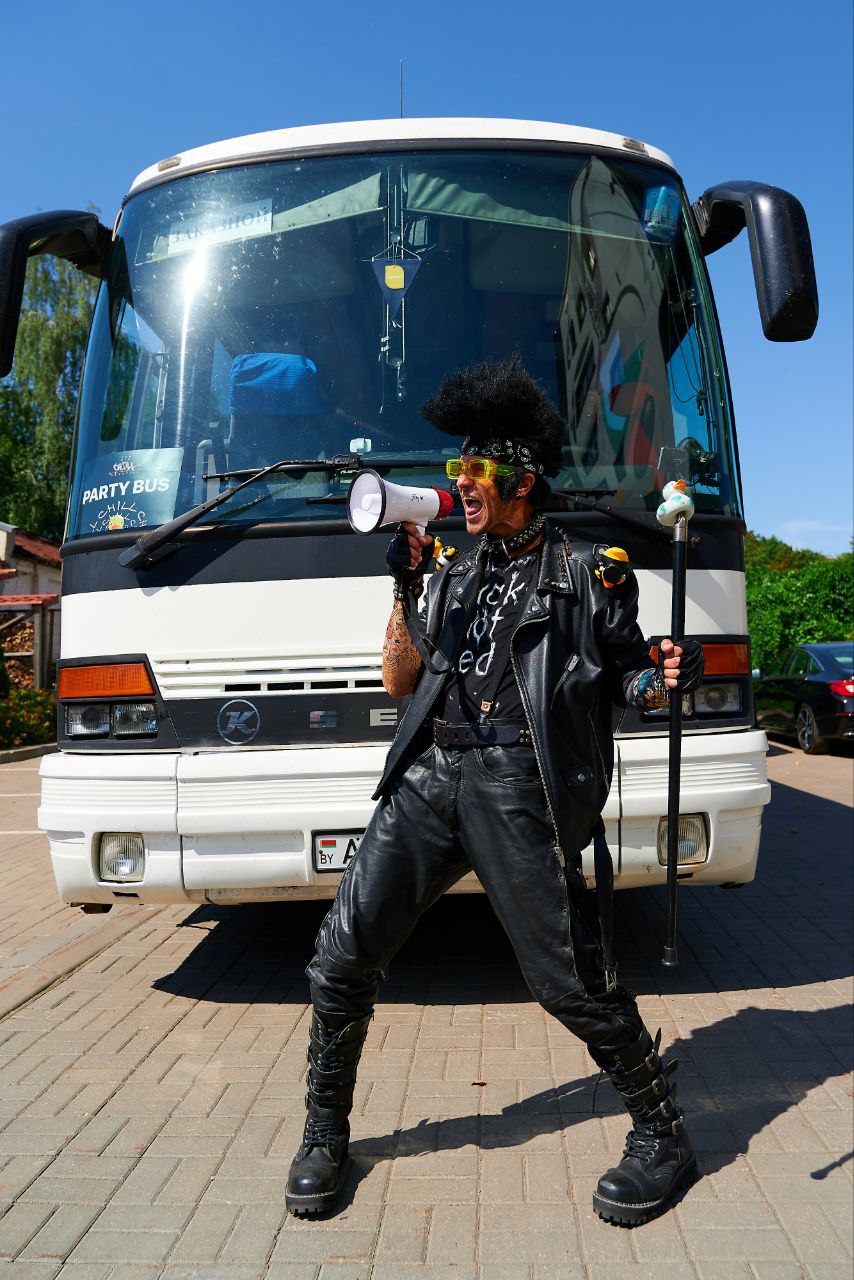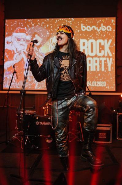 Рок-н-ролл жив! И Рокер тому – кричащее доказательство! Необузданный, суровый аниматор сделает тимбилдинг «MUSIC» или рок вечеринку стильной, громкой, мощной, как электрогитара «Металлики», а также поздравит мужиков в офисе с 23 февраля. Одет в фирмовый прикид: косуха, бандана, тяжелые ботинки. На лице угарный макияж и растрепанная растительность. На фотках всегда показывает «козу», если голоден – язык. Несколько раз пытался уехать на Харлее прямо с фотозоны. Телевизор из окна он больше не выбрасывает, а вот гитару разломать – каждый раз руки чешутся, поэтому кавер-бэнды его опасаются.