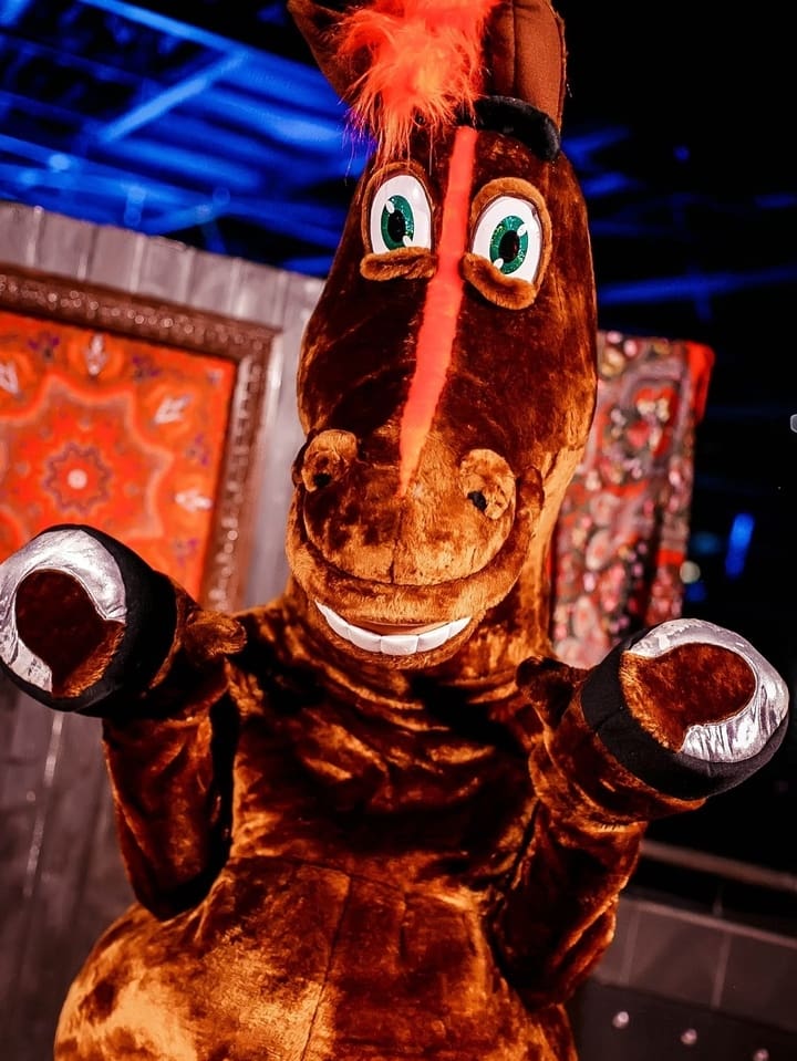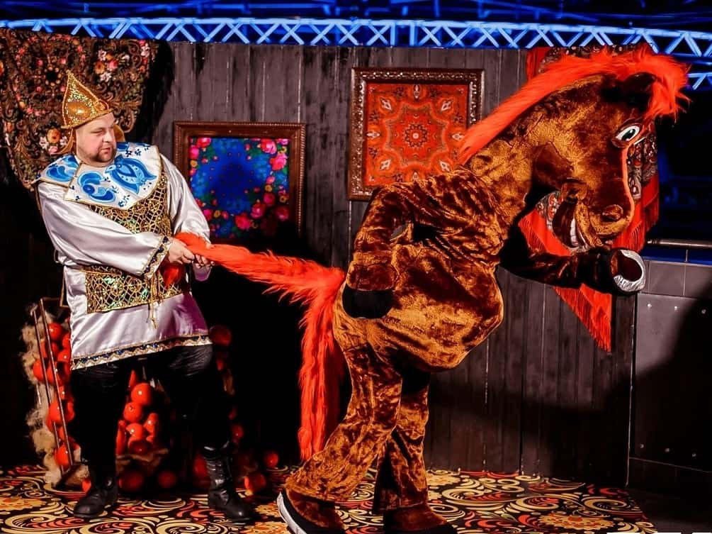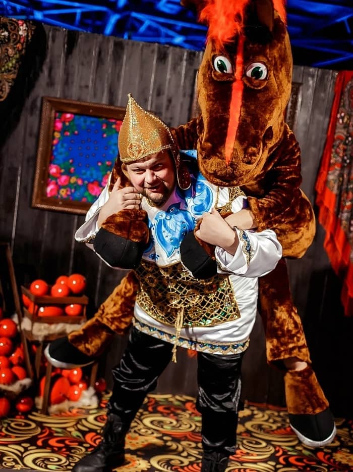 Красногривый персонаж любимого мультфильма «Три богатыря». Наша ростовая кукла предпочитает тратить свои могучие лошадиные силы в компании ребят, с которыми во всю играет и прыгает. Блестящая шерстка, сияющий взгляд и большие, заметные отовсюду, размеры делают озорного красавца не просто обаятельным другом, а отличным компаньоном на фотозоне для малышей и родителей. Улыбка у сказочного жеребца такая, что позавидуют голливудские звезды, ведь он хорошо за ней ухаживает и вас научит! Хорошо подойдёт для тематических народных праздников, вечеринок «Пасха», «Масленица», «Русские народные сказки» и других.