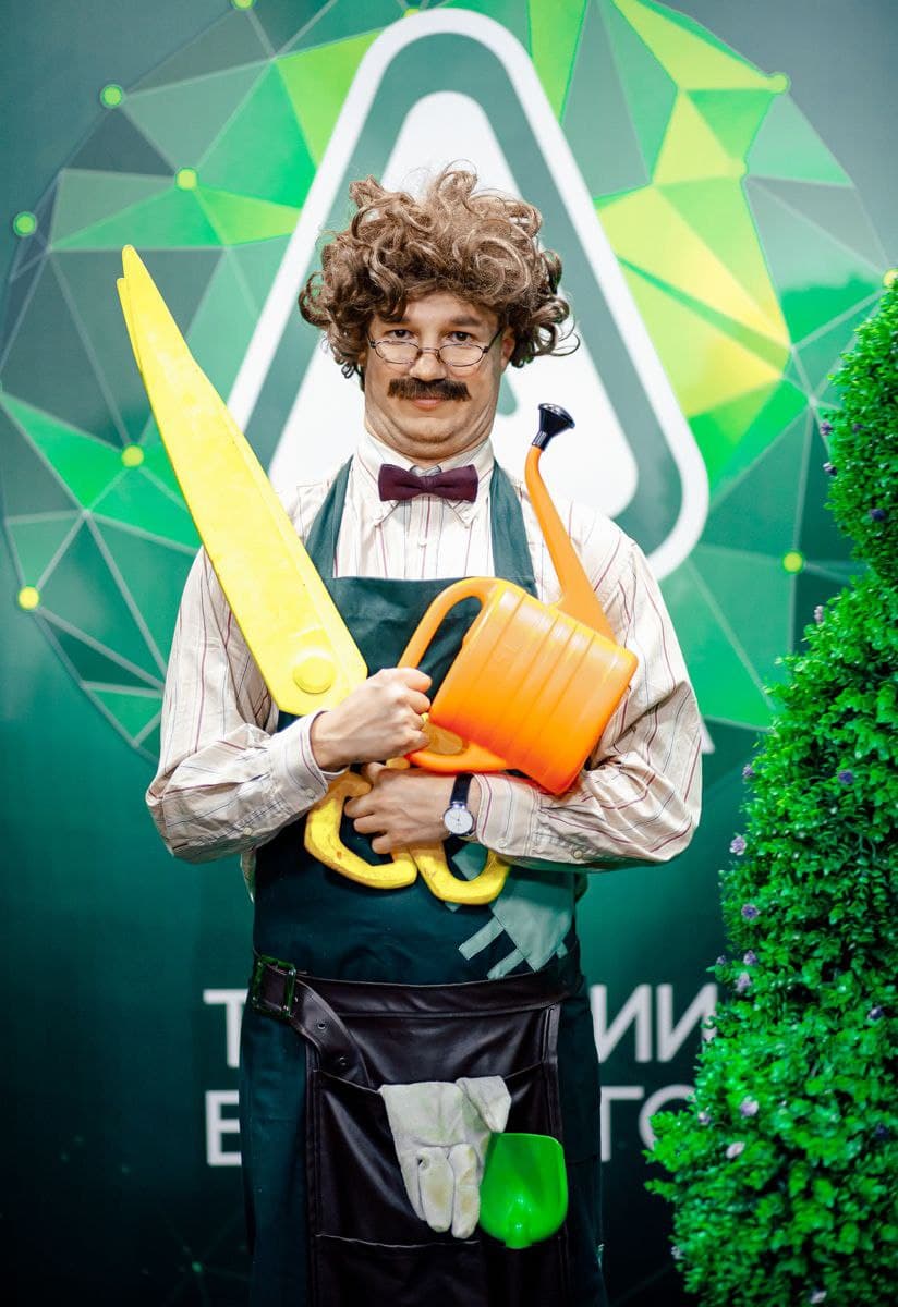 Аниматор отлично знает, как нужно ухаживать за нежными растениями, а также вашим добрым настроением, на празднике жилого комплекса или субботнике, летнем корпоративе или пикнике. Садовник радушно встретит гостей, присмотрит за ними, как за самыми редкими розами и пионами. Он всегда в фартуке, перчатках и милой бабочке, потому что цветы и люди, любят аккуратность. Иногда пускает в ход большие ножницы, чтобы лучше смотреться с вами в кадре. Харизматичный персонаж соберет знатный урожай веселых эмоций и победит всех вредителей, вроде скуки или грусти. Угостит яблочками, если наградите его улыбкой.