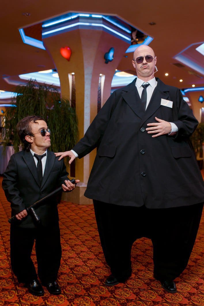 Наш аниматор – это самая смешная, безукоризненно стильная, крупногабаритная система безопасности. Все в одном лице! Толстый охранник встанет на стражу вашей вечеринки, поможет открыть спорт-центр или развлекательную площадку. Ликвидирует все мыслимые опасные ситуации, просто закрыв их животом. Рассмешит каждого на встрече гостей, потому что пропускает лишь веселых. Проконтролирует улыбки на фотозоне и подкинет парочку шуток. С непроницаемой физиономией и такими же темными очками, строгий круглый мужчина в черном костюме и дубинкой в руках проверит у вас наличие запрещенных веществ. Если не найдет, то сам подбросит, но сугубо в развлекательных целях.
