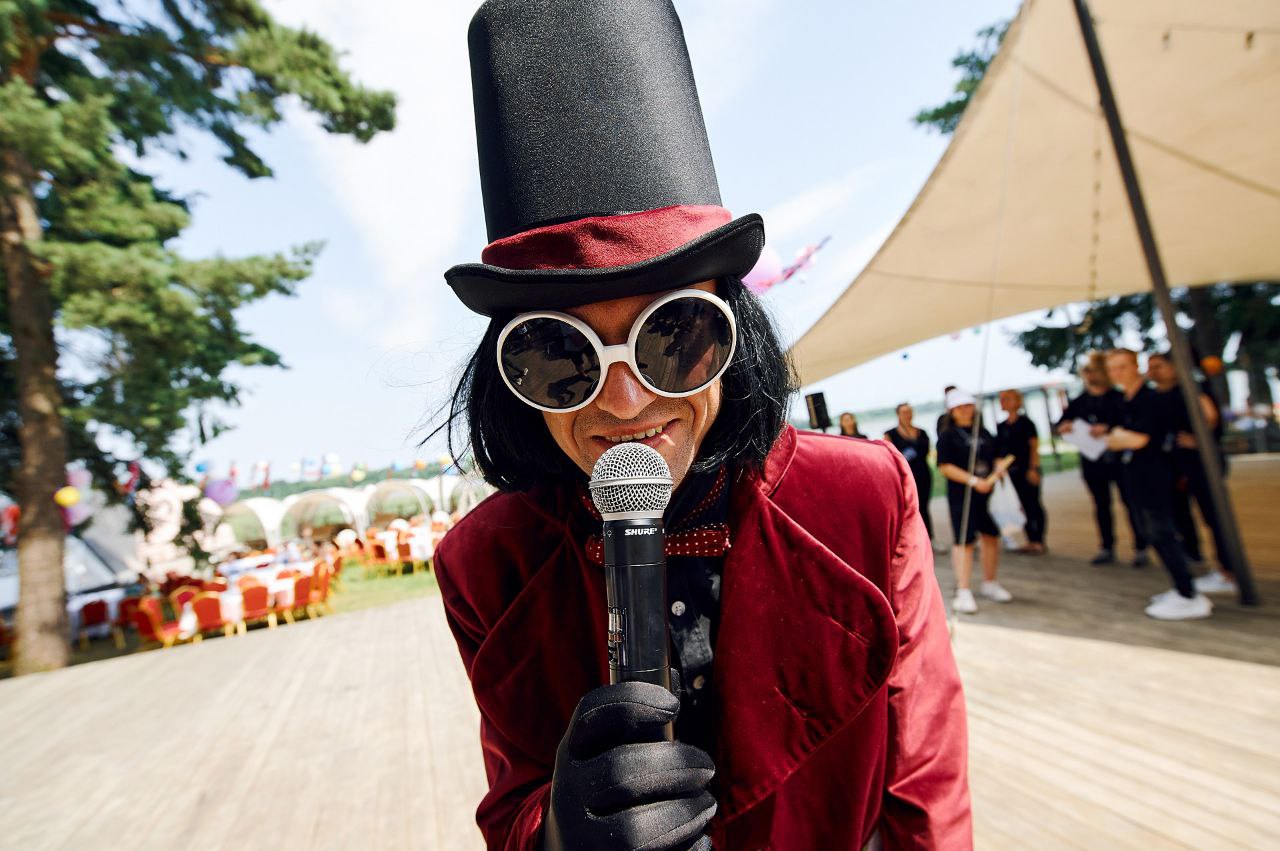 Аниматор Вилли Вонка: Обаятельный хозяин шоколадной фабрики покинул ее и находится в поиске развлечений, не дожидаясь своего золотого билета. Общительный, странноватый, но безобидный Вилли Вонка встретит и развеселит гостей на корпоративе или другом празднике. Чудной аниматор в изысканном бордовом плаще, черном цилиндре и фирменных больших очках поможет сделать фотозону по-настоящему креативной. В его компании фотографии становятся яркими, а общение интересным и необычным.