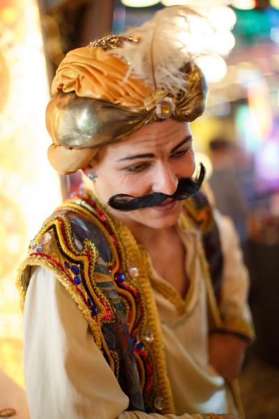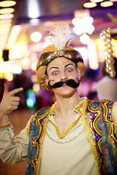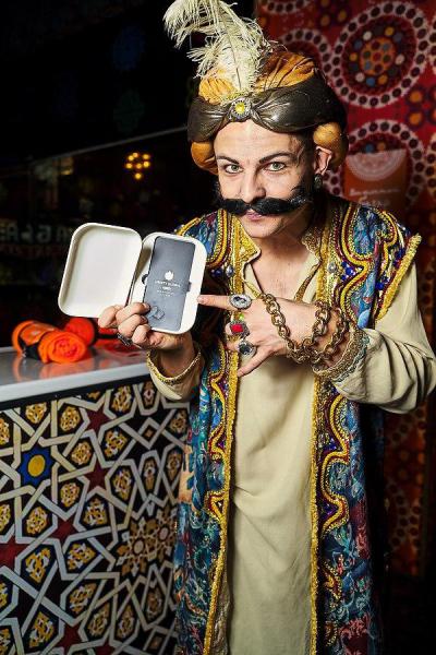 С хитрецой в глазах и ярким пером в тюрбане, восточный торговец продал блестящие украшения Шахерезаде, новый компас Синдбаду и прибыл на наши просторы. Экзотический аниматор любит тематические корпоративы и красивые фотозоны, ведь они напоминают шумные и светлые улицы его родных мест. Вид роскошного цветастого халата и пышных усов дает усладу очам, а льстивые речи незаметно проникают в уши. Бодрый голос и бесконечные шутки позволяли ему выдерживать жесткую конкуренцию на всех рынках от Стамбула до Багдада. С тех пор как купил долю в AliExpress, колоритный персонаж просто любит делать непревзойденные селфи и участвует в тимбилдинге «Восток», «Вокруг света».